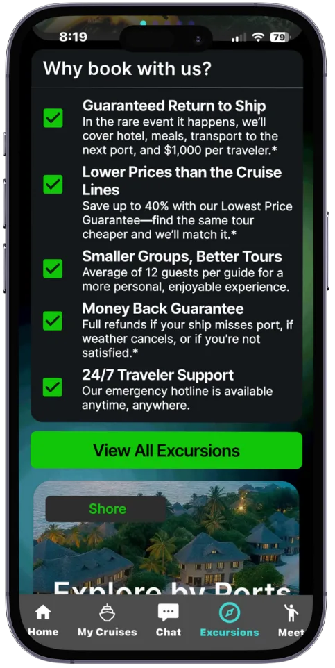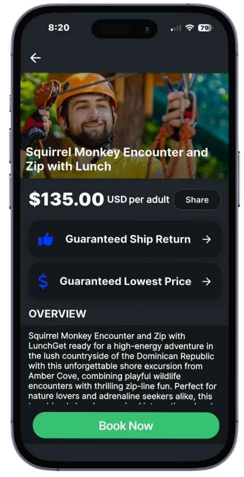 See all the shore excursions available for each port on your cruise, organized by day so you can quickly browse what’s offered and book what interests you.